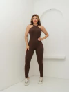 Macacão Longo em Tecido Canelado de Poliamida Alta Compressão